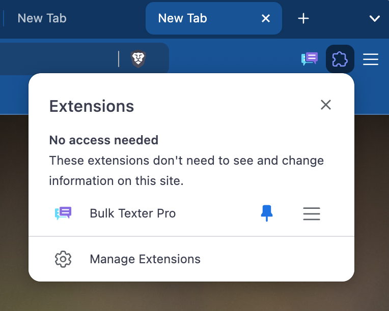 Assuming you've already downloaded it, you can open Bulk Texter Pro by clicking the puzzle piece icon at the top right of your browser, then clicking the Bulk Texter Pro icon.