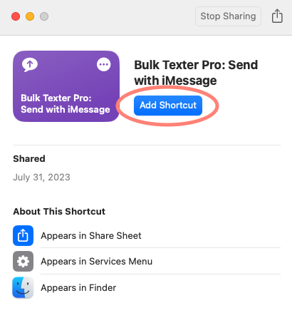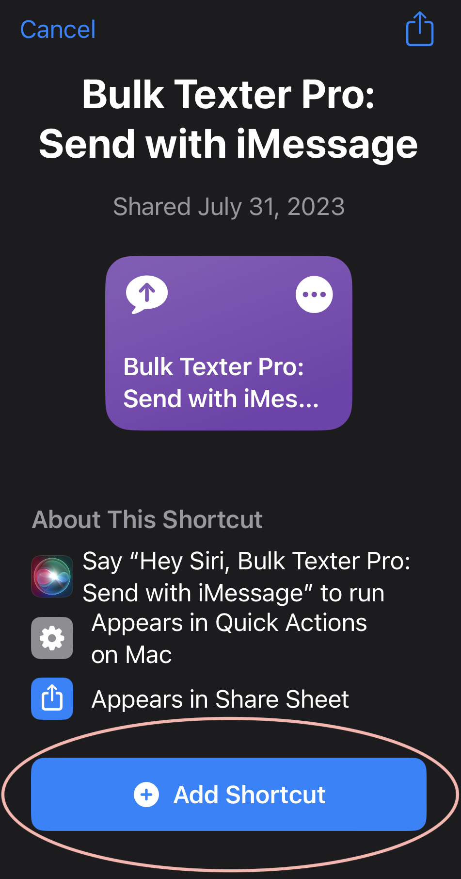 Next, install the latest version of the Bulk Texter Pro Shortcut by opening this link: